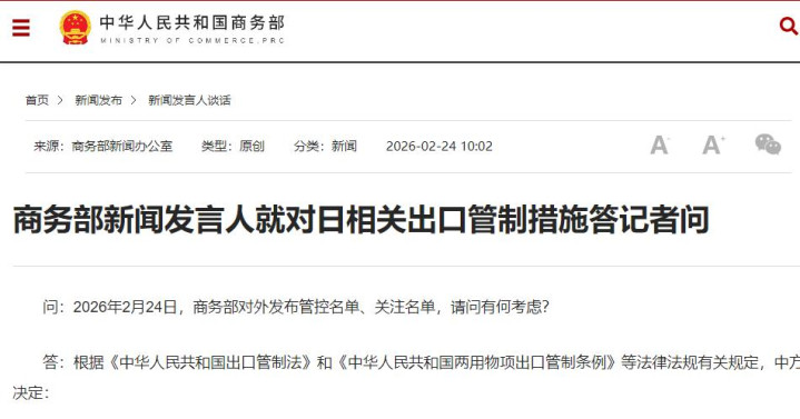 商务部发言人明确表示,这些措施目的是制止日本“再军事化”和拥核企图,完全正当、合理、合法,不影响中日正常经贸往来,诚信守法的日本实体无需担心。