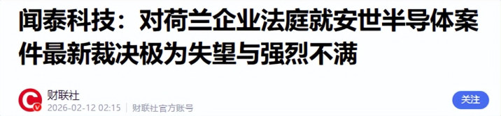 2026年2月11日,阿姆斯特丹企业法庭作出判决,在全球半导体行业引发巨大反响。判决内容包括:启动正式调查,任命两名独立调查官,调查范围扩大到首席法务官与运营官。并且继续维持对闻泰科技董事长张学政的停职令,其股权托管、投票权冻结等临时措施全部延长,调查周期预计超过六个月。